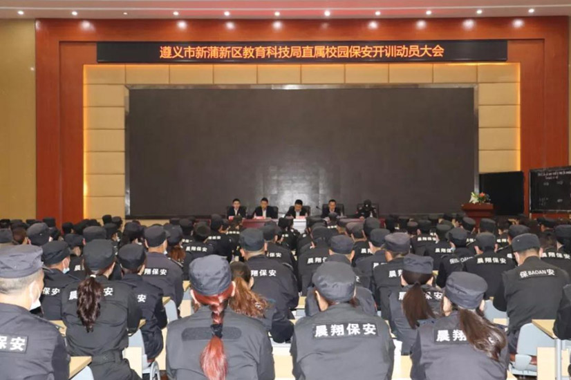 4月24日,陽光明媚,培訓(xùn)活動開訓(xùn)動員大會在遵義市第四十二中學(xué)舉行,共有300余名隊(duì)員參加培訓(xùn)。新蒲新區(qū)教育科技局黨委委員、局長閆福喜、教育科技局法安科科長黃吉文應(yīng)邀出席;特邀遵義市公安局新蒲分局特巡警陳亮同志一行人員為專業(yè)技能培訓(xùn)教官;特邀新舟鎮(zhèn)衛(wèi)生院護(hù)士長胡佐順同志一行人員為急救知識授課老師;晨翔保安公司總經(jīng)理羅曉明、區(qū)域管理負(fù)責(zé)人陶永濤參加了會議。